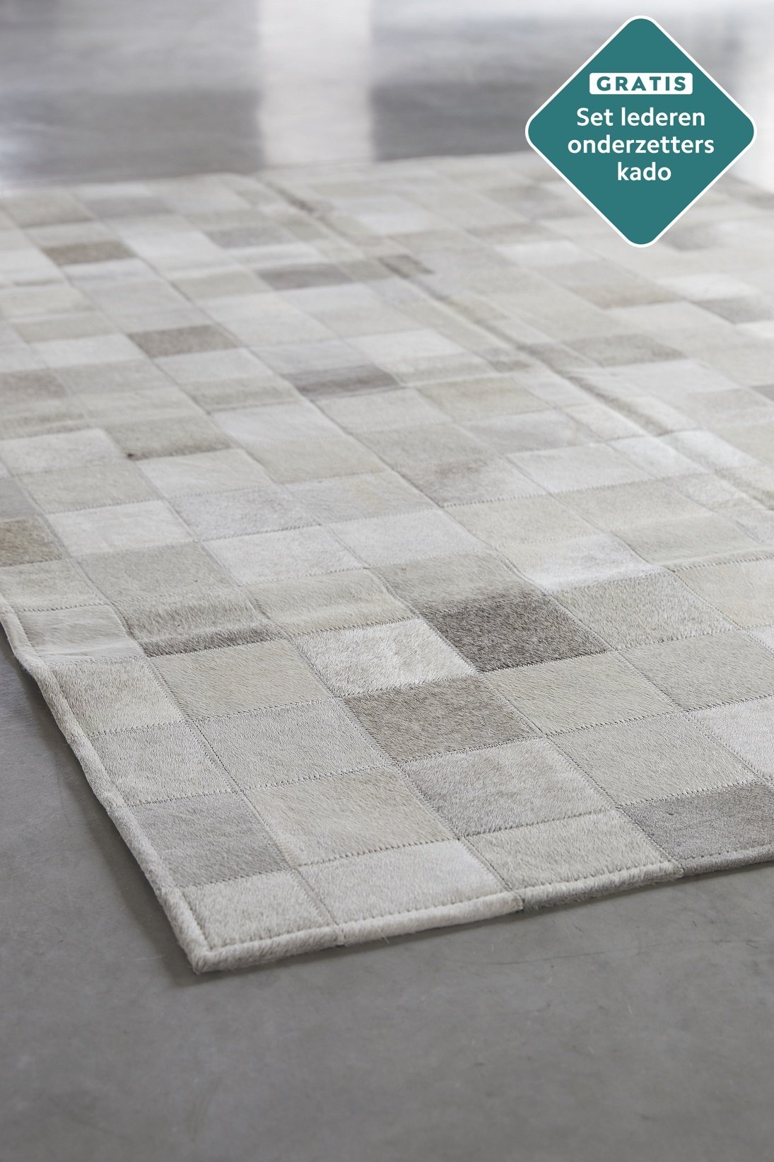 Kuhfell Patchwork-Teppich grau 180×120 cm.