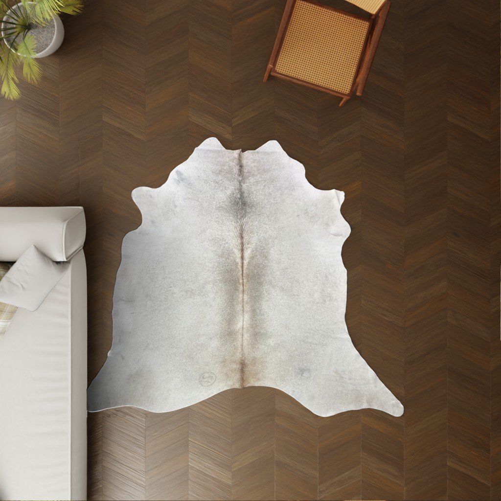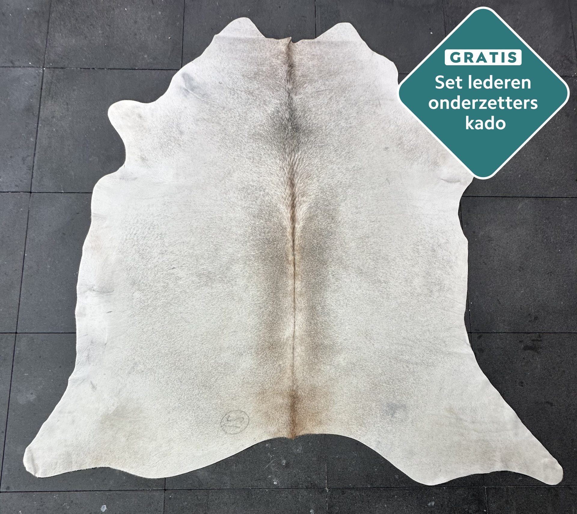 • Einzigartiges crème-graues Kuhfell mit Fleck