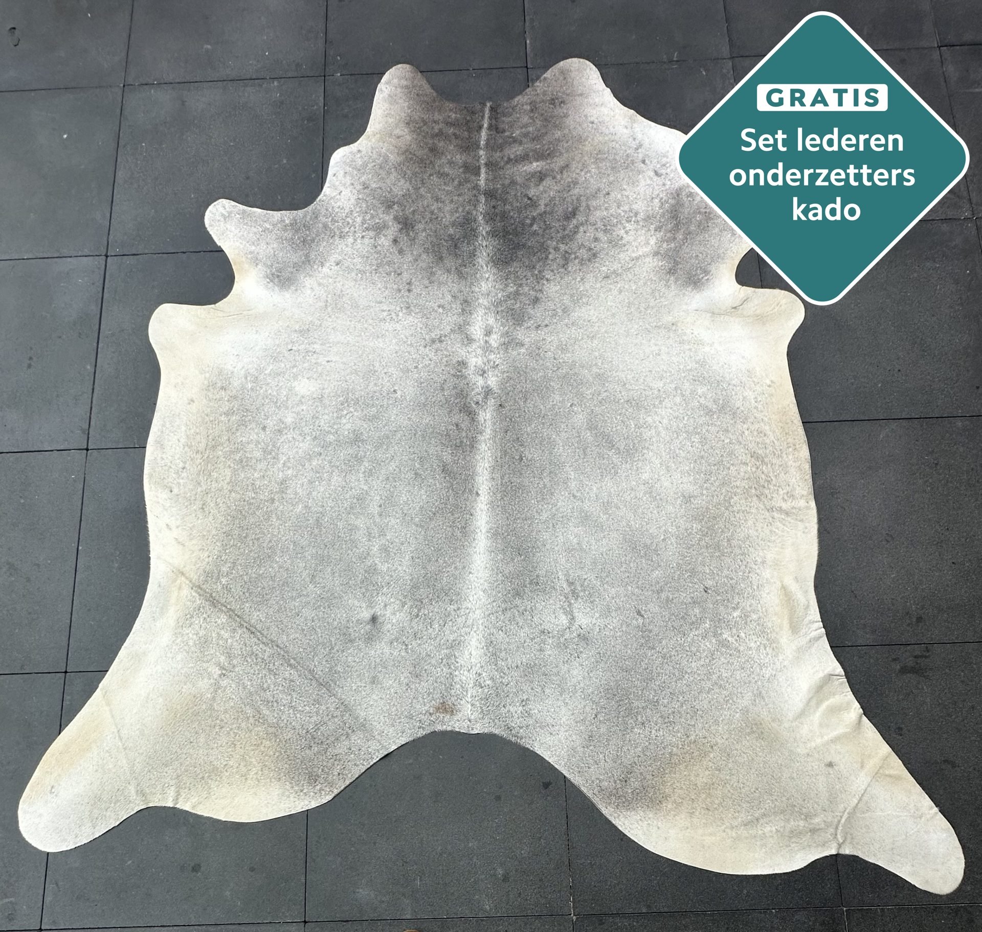 Besonderes und extra grosses Kuhfell mit einer schonen donkergraue Zeichnung.