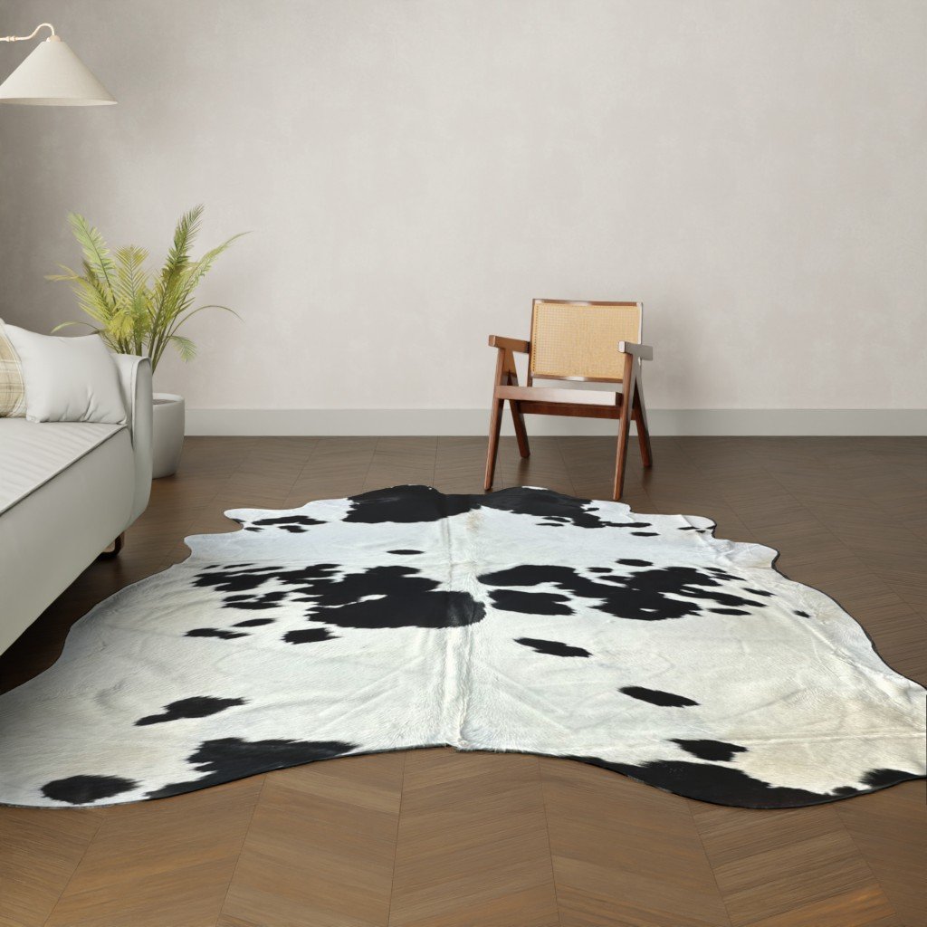 Besonderes und grosses Kuhfell mit einer schonen schwarz-weisse gefleckte Zeichnung.