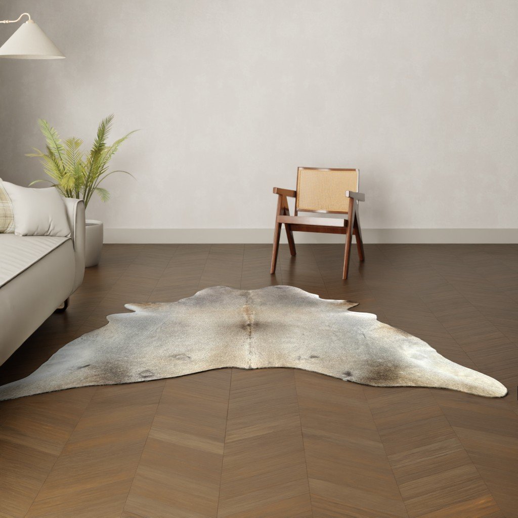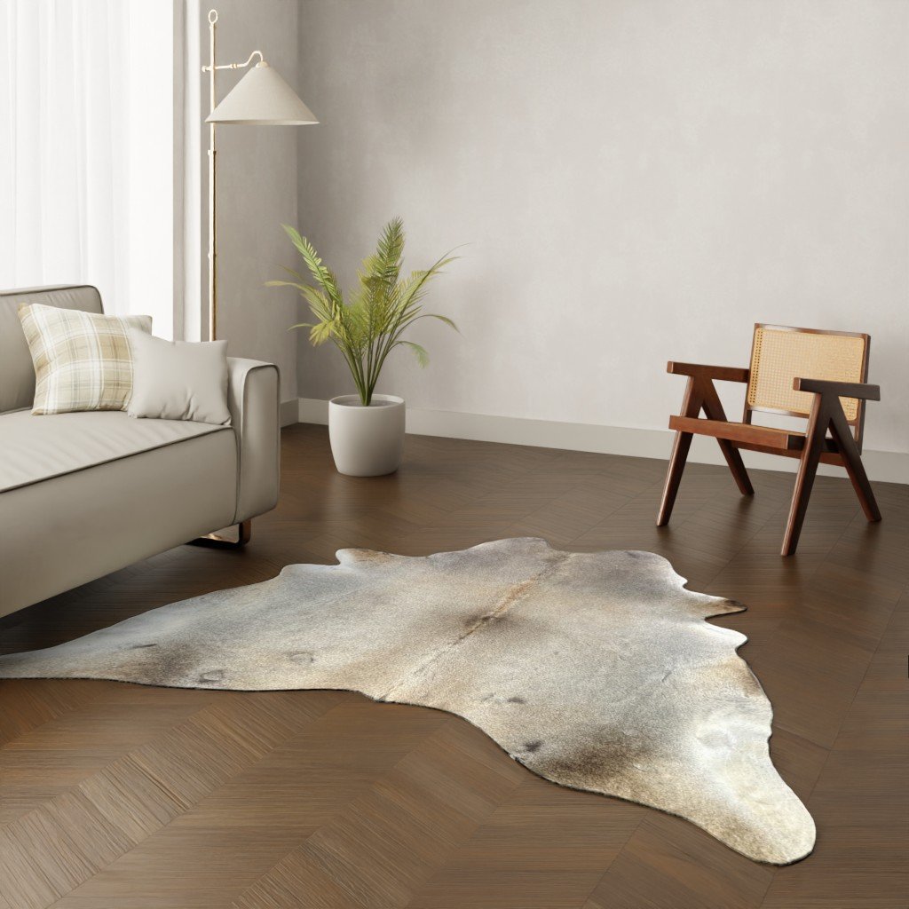 Besonderes Kuhfell mit einer schonen taupe-graue Zeichnung.